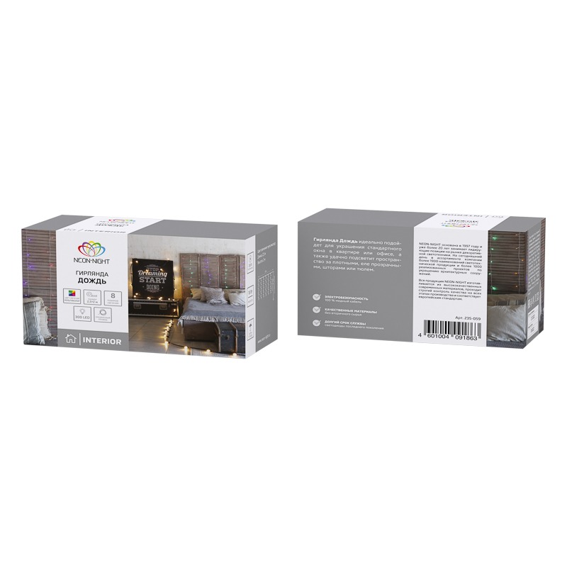 Гирлянда «Дождь» 2,5×2 м — прекрасный вариант для оформления окон в жилых помещениях, кафе, офисах. Украшение гармонично дополнит обстановку спальни, гостиной, игровой комнаты, порадует ярким задорным свечением детей и взрослых. Размер гирлянды позволяет декорировать оконные проемы от потолка до пола. 300 светодиодов сияют разноцветными огнями и меняют 8 режимов свечения одним нажатием кнопки на контроллере. Оболочка из надежного, прозрачного ПВХ защищает кабель от повреждений, а пользователей от воздействия электрического тока. Гирлянда подключается в электросеть 230 В при помощи шнура питания длиной 3 метра.
