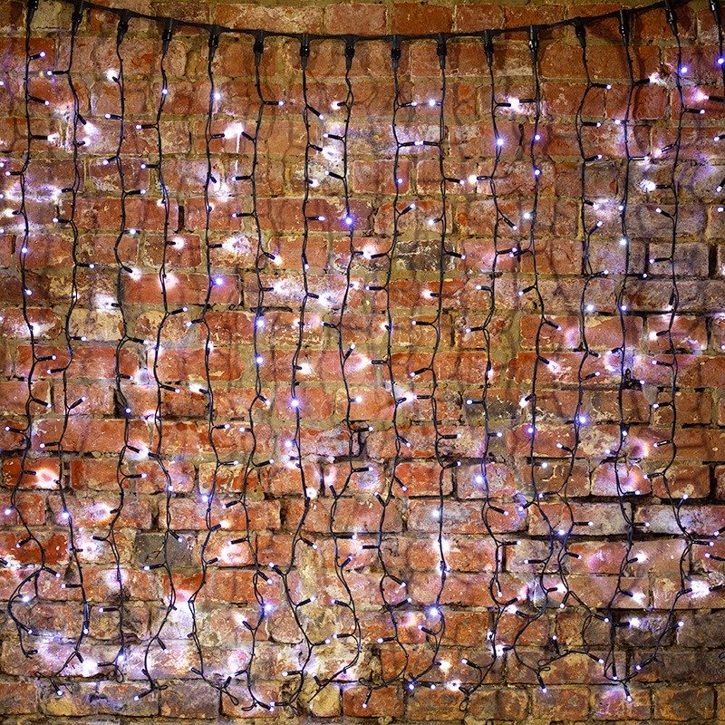 Гирлянда "Светодиодный Дождь" представляет собой гибкий горизонтальный шнур, к которому через определенные промежутки крепятся вертикальные нити со светодиодными лампами, которые отличаются от «Бахромы» тем, что имеют одинаковую, достаточно значительную длину, часто превышающую протяженность шины. На концах каждой шины есть разъем и штепсель, которые предназначены для последовательного соединения нескольких световых дождей в большой занавес ПЛЕЙ-ЛАЙТ. Используя занавес, можно не только создавать красивые световые занавесы или оформлять различные плоскости, например, фасады домов, окна и т.д., но и украшать объемные объекты.