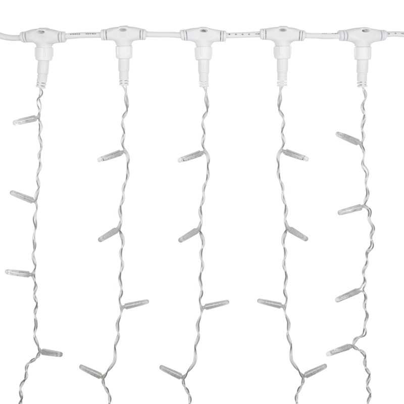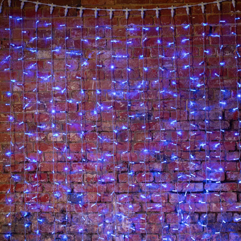 Гирлянда "Светодиодный Дождь" представляет собой гибкий горизонтальный шнур-шину (2м), к которому через определенные промежутки крепятся вертикальные нити (16 шт.) со светодиодными лампами, которые отличаются от «Бахромы» тем, что имеют одинаковую, достаточно значительную длину, часто превышающую протяженность шины. На концах каждой шины есть разъем и штепсель, которые предназначены для последовательного соединения нескольких световых дождей в большой занавес ПЛЕЙ-ЛАЙТ. Используя занавес, можно не только создавать красивые световые занавесы или оформлять различные плоскости, например, фасады домов, окна и т.д., но и украшать объемные объекты.