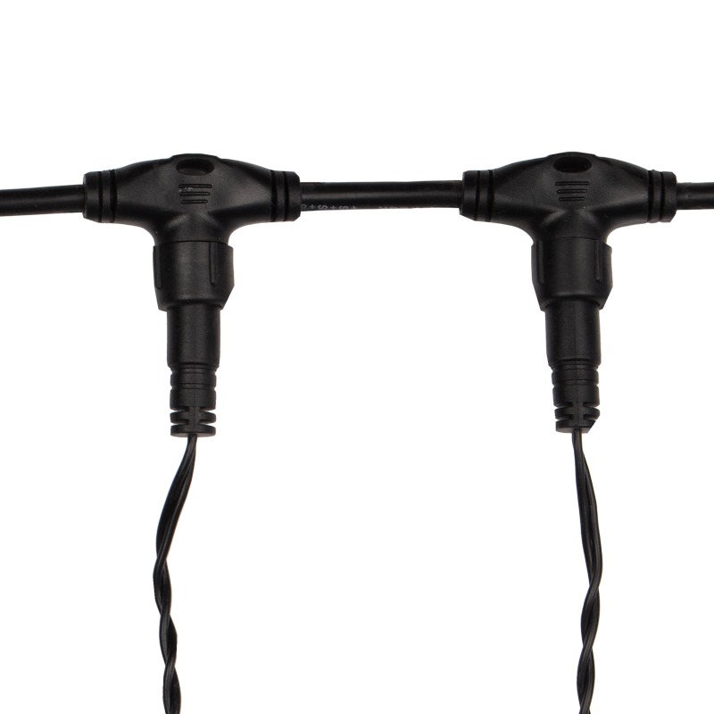 Гирлянда "Светодиодный Дождь" представляет собой гибкий горизонтальный шнур-шину (2м), к которому через определенные промежутки крепятся вертикальные нити (20 шт.) со светодиодными лампами, которые отличаются от «Бахромы» тем, что имеют одинаковую, достаточно значительную длину, часто превышающую протяженность шины. На концах каждой шины есть разъем и штепсель, которые предназначены для последовательного соединения нескольких световых дождей в большой занавес ПЛЕЙ-ЛАЙТ. Используя занавес, можно не только создавать красивые световые занавесы или оформлять различные плоскости, например, фасады домов, окна и т.д., но и украшать объемные объекты.