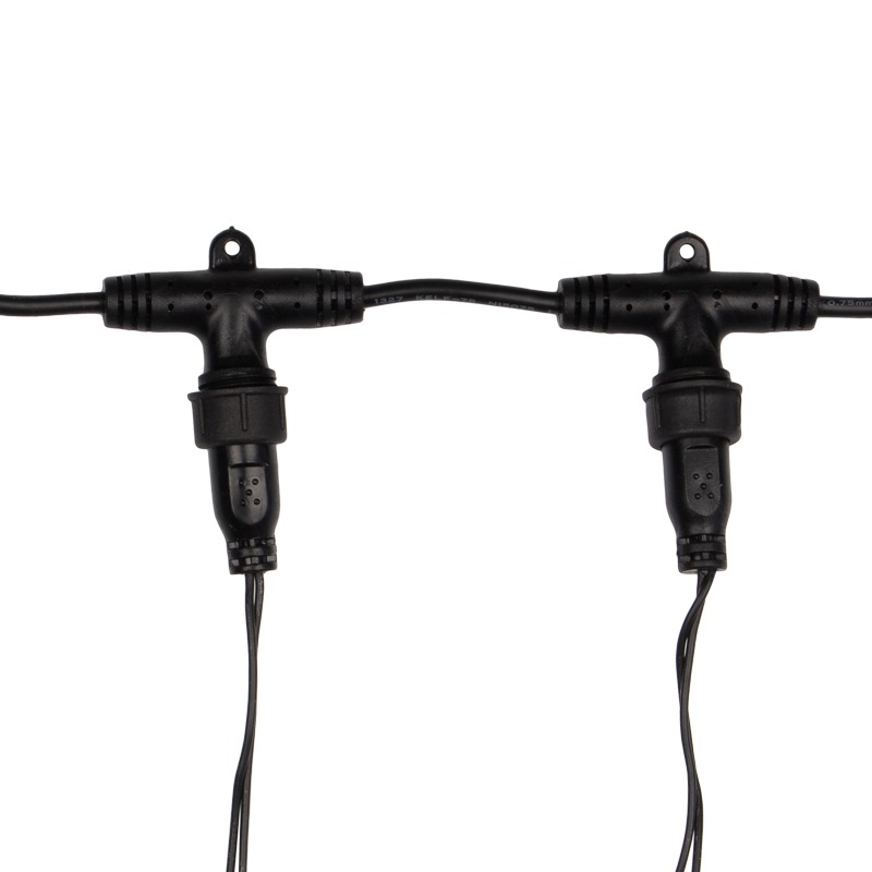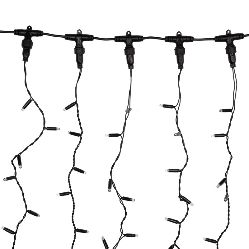 Гирлянда "Светодиодный Дождь" представляет собой гибкий горизонтальный шнур-шину (2м), к которому через определенные промежутки крепятся вертикальные нити (20 шт.) со светодиодными лампами, которые отличаются от «Бахромы» тем, что имеют одинаковую, достаточно значительную длину, часто превышающую протяженность шины. На концах каждой шины есть разъем и штепсель, которые предназначены для последовательного соединения нескольких световых дождей в большой занавес ПЛЕЙ-ЛАЙТ. Используя занавес, можно не только создавать красивые световые занавесы или оформлять различные плоскости, например, фасады домов, окна и т.д., но и украшать объемные объекты.