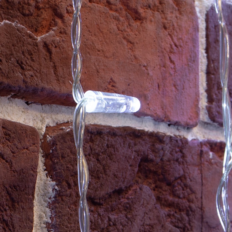 Гирлянда "Светодиодный Дождь" представляет собой гибкий горизонтальный шнур-шину (2м), к которому через определенные промежутки крепятся вертикальные нити (16 шт.) со светодиодными лампами, которые отличаются от «Бахромы» тем, что имеют одинаковую, достаточно значительную длину, часто превышающую протяженность шины. На концах каждой шины есть разъем и штепсель, которые предназначены для последовательного соединения нескольких световых дождей в большой занавес ПЛЕЙ-ЛАЙТ. Используя занавес, можно не только создавать красивые световые занавесы или оформлять различные плоскости, например, фасады домов, окна и т.д., но и украшать объемные объекты.