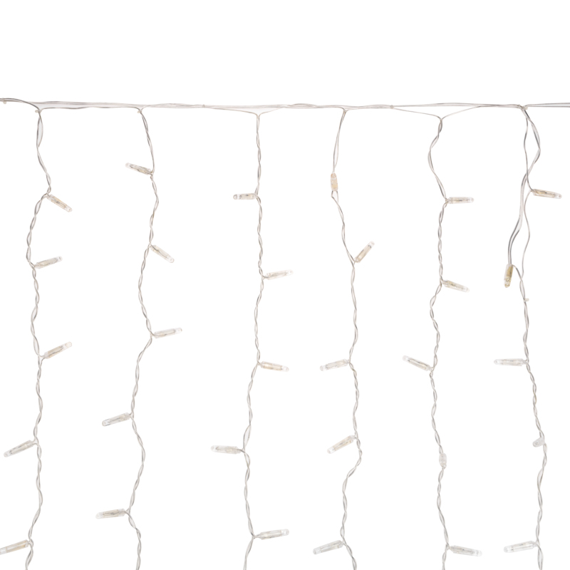 Светодиодная гирлянда Занавес (Дождь) представляет собой гибкий горизонтальный шнур-шину 2 м, к которому через определенные промежутки крепятся 20 вертикальных нитей равной длины 0,8 м со светодиодами.
