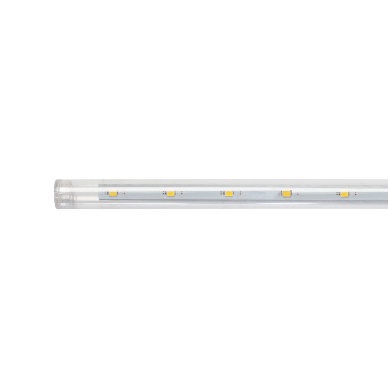 Гирлянда «Тающие сосульки» — это необычное светодиодное украшение, которое представляет собой серебристый провод в прозрачной оболочке из ПВХ, с расположенными на нем 8 декоративными элементами в виде сосулек. Каждая трубка имеет длину 50 см и содержит внутри плату с диодами, управляемую микрочипом. Светодинамический эффект имитирует стекающую каплю. Гирлянда обладает защитой IP20 и подходит для использования в помещениях с естественной влажностью. Длина питающего шнура — 1.5 метра. Для подключения в сеть с напряжением 230 В