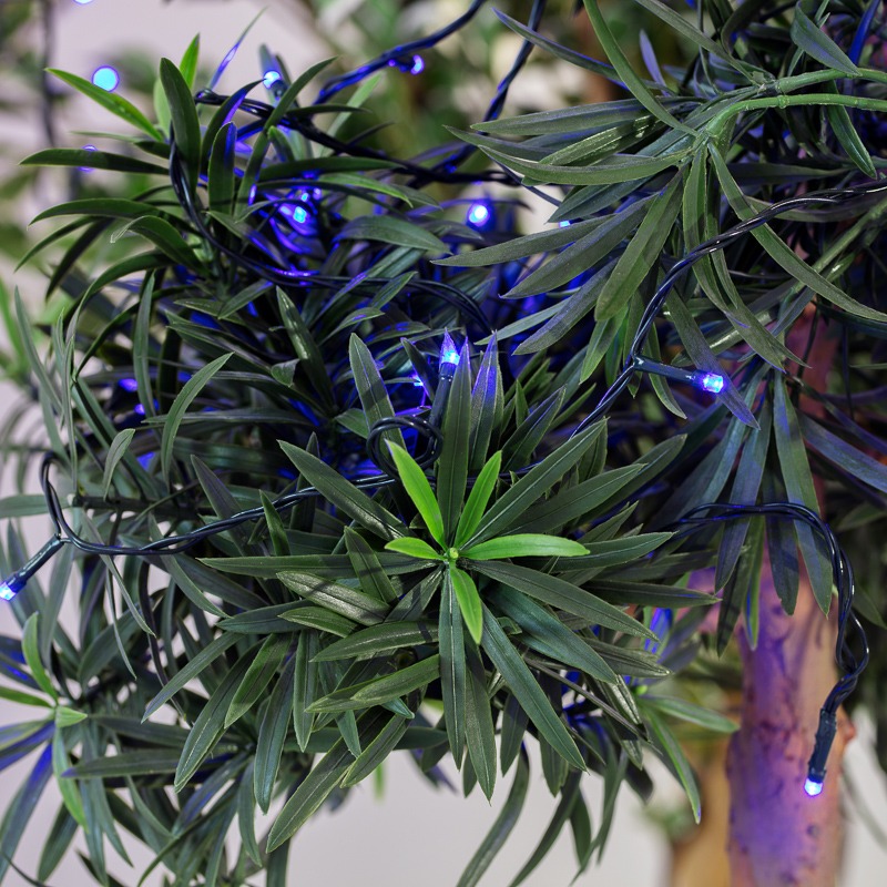 Гирлянда «Твинкл» длиной 10 метров с 80 светодиодами синего свечения идеально подходит для праздничного оформления большой новогодней ели. Диоды не нагреваются, что говорит о безопасности изделия во время использования. Провод из темно-зеленого ПВХ отлично маскируется в пушистой кроне. Длинная гирлянда универсальна и может использоваться для оформления любых интерьерных предметов. Диоды излучают яркий ровный свет, экономично расходуют электроэнергию, не теряют свои свойства в течение всего срока службы. Длинный кабель (3 метра) позволяет подключить гирлянду в нужном месте без удлинителя.