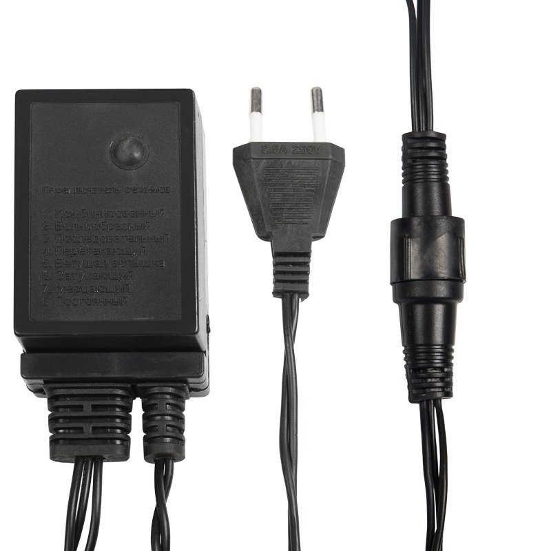 Гирлянда «Твинкл Лайт» представляет собой общий провод с последовательно расположенными коротенькими отводами, направленными в разные стороны. На концах этих «отростков» расположены яркие светодиоды. Для создания праздничной светодинамики в общий провод встроен многопрограммный контроллер, который позволяет управлять 8 режимами свечения.