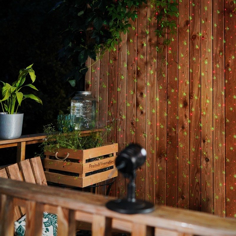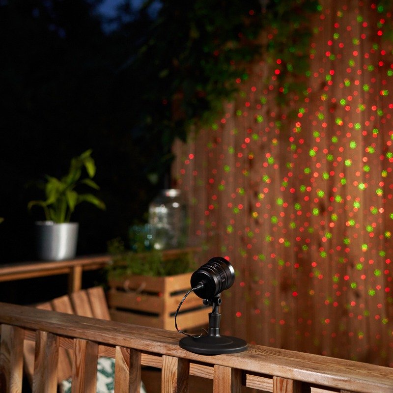 Лазерный проектор с трансформатором на 3.6 Вольт и пультом дистанционного управления используется для создания эффектной светодинамики, которая разнообразит вашу вечеринку и подарит веселое настроение гостям. Степень защиты IP44 позволяет использовать устройство как дома, так и на улице. На основе лазерных лучей формируются проекции колокольчиков, елок, точек, снежинок и фигурок Деда Мороза. Есть возможность отрегулировать скорость, переключать режимы, установить таймер рабочего времени. Оптимальное расстояние для проекции — 15 метров.