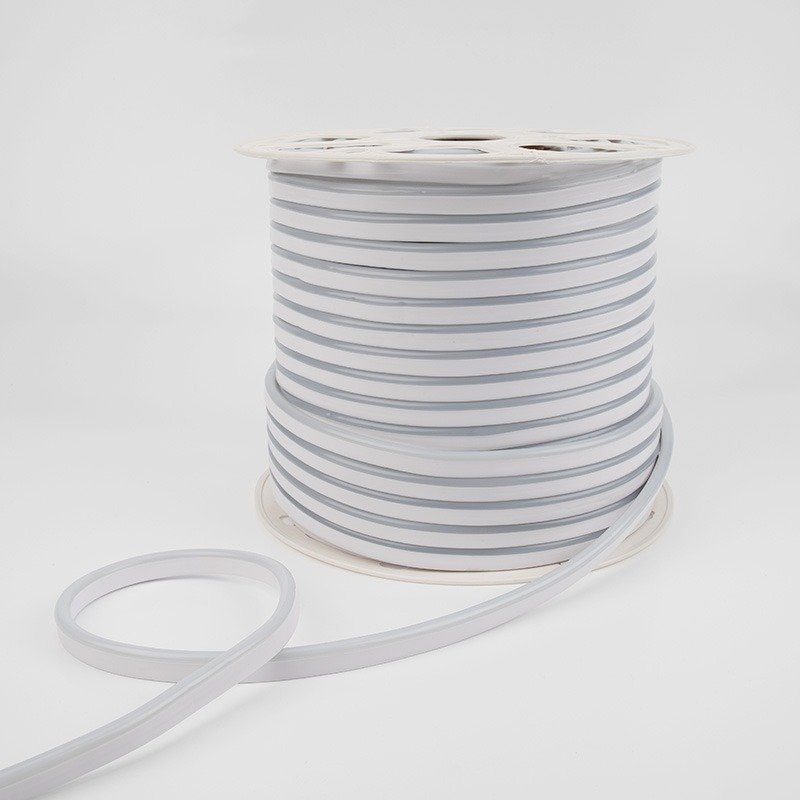 Гибкий неон применяется для декоративной и контурной подсветки объектов, а также каркасных фигур. Гибкая структура позволяет адаптировать неон к различным формам и конструкциям, создавая уникальные световые композиции и архитектурные акценты.<br> Благодаря гибкому неону каркасные фигуры превращаются в изысканные акценты для праздников и событий. Разнообразные композиции, такие как елки, сердца, звезды и другие формы придают особый шарм и великолепие любому мероприятию.<br> Изделие представляет собой световой шнур, изготовленный из матовой белой ПВХ трубки, внутри которой расположены токопроводящие жилы и светодиоды. <br> Гибкий неон белого цвета с напряжением 24 В работает в режиме постоянного свечения и поставляется в бухтах 50 м. <br> Максимальная рекомендуемая длина подключения для неона 24 В составляет не более 50 м в одну линию. При этом необходимо использовать блоки питания мощностью 300 Вт с каждого конца бухты для равномерной засветки (блоки питания приобретаются отдельно).