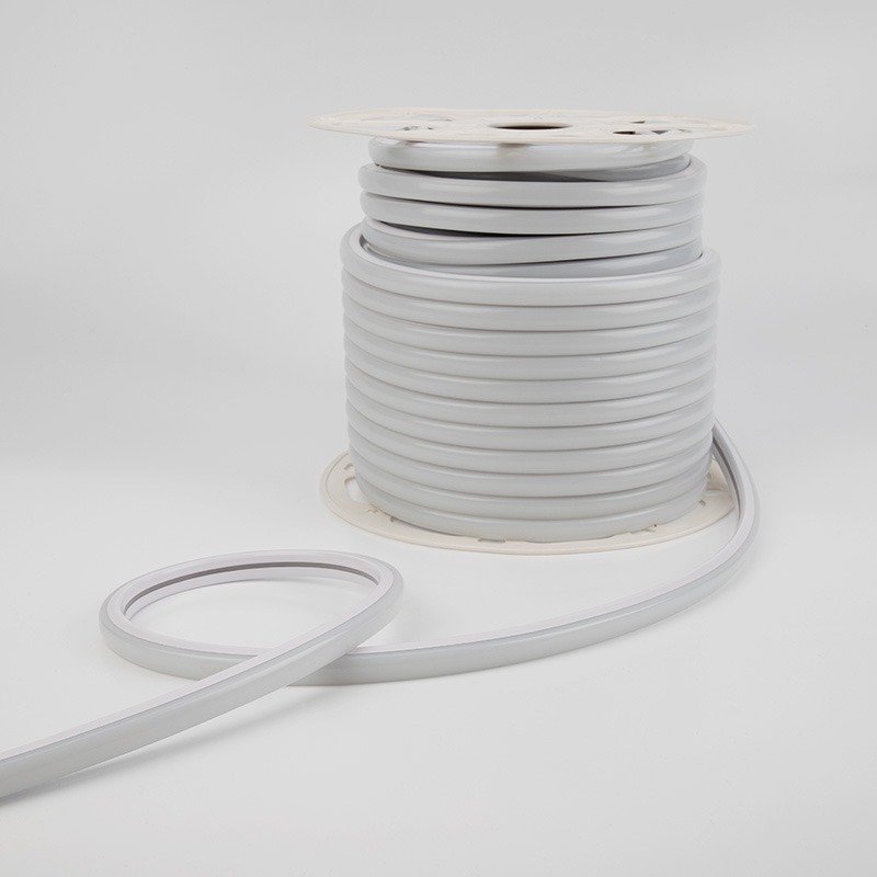 Гибкий неон – это световой шнур, выполненный из матовой полимерной трубки, наполненной ПВХ, со светодиодной лентой внутри. Используется для рекламной, декоративной и архитектурной подсветки различных объектов, зданий, сооружений, декорирования офисного или домашнего интерьера.<br> Данный неон выполнен на SMD светодиодах белого цвета. Выполнен в форме «D», что значительно расширяет угол свечения и спектр применения изделия. <br> При подключении гибкого неона к соединительному разъему (муфте) необходимо заизолировать свободное воздушное пространство соединительного разъема (муфты) морозостойким силиконовым герметиком, предотвращающим попадание влаги. Сверху данного соединения необходимо использовать термоусаживаемую трубку.<br> Каждая бухта уже укомплектована комплектом подключения, максимальная подключаемая на 1 шнур длина 50 м. Дополнительные шнуры можно приобрести отдельно арт. 134-010.