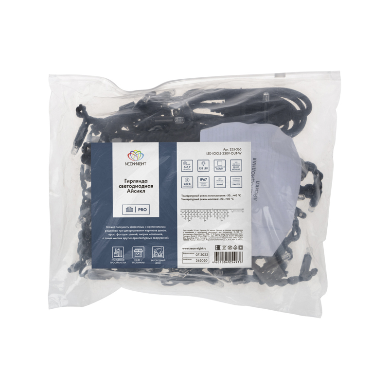 Гирлянда имитирует сосульки и может послужить оригинальным решением при украшении карнизов, арок, фасадов зданий, витрин магазинов, а также стать эффектным элементом декора внутри помещений.