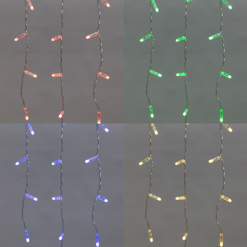 Гирлянда Айсикл (Бахрома) представляет собой гибкий горизонтальный шнур-шину, к которому через определенные промежутки крепятся вертикальные нити разной длины со светодиодами.