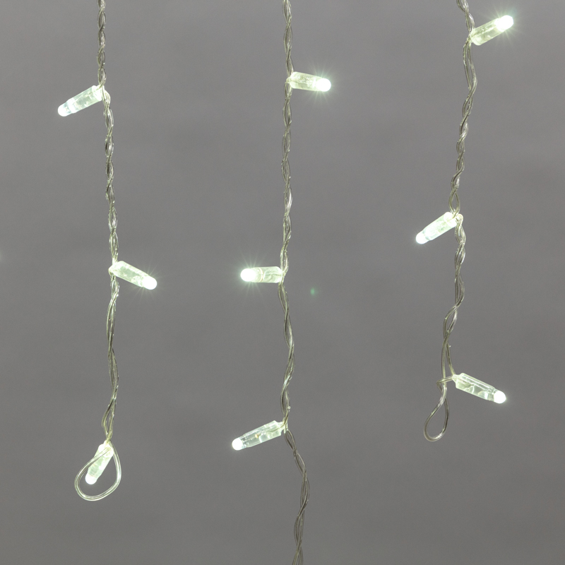 Гирлянда имитирует сосульки и может послужить оригинальным решением при украшении карнизов, арок, фасадов зданий, витрин магазинов, а также стать эффектным элементом декора внутри помещений.