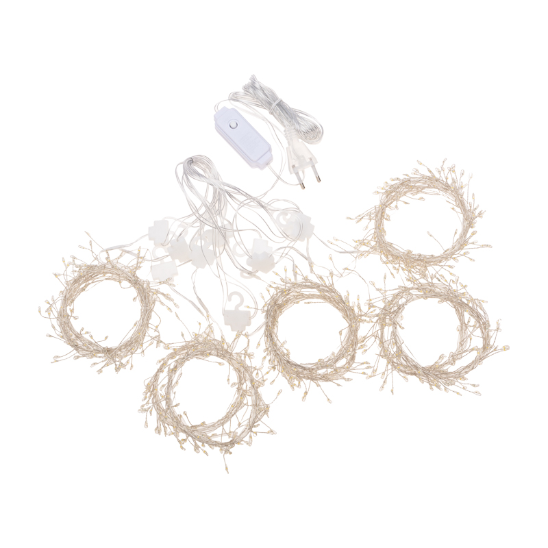 Гирлянда состоит из нитей, на которых расположено 600 светодиодов в виде капель росы.