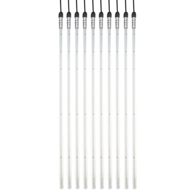 Гирлянда представляет собой комплект из 10 прозрачных пластиковых трубок, расположенных на расстоянии 100 см друг от друга.