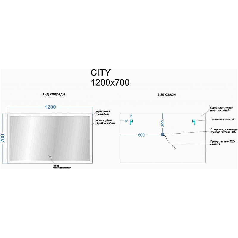 Зеркало Sancos City 120 CI1200 с подсветкой с сенсорным выключателем