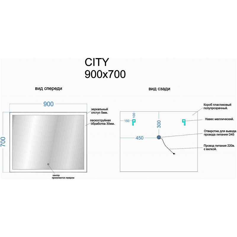 Зеркало Sancos City 90 CI900 с подсветкой с сенсорным выключателем