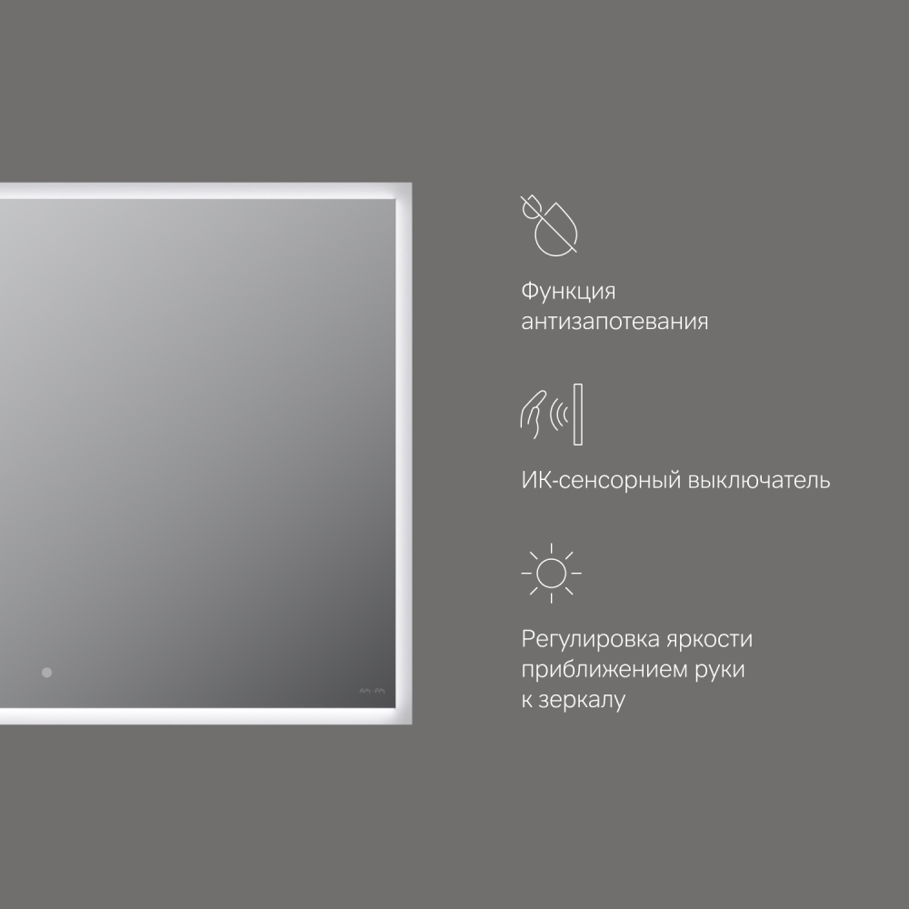 Инфракрасный сенсорный выключатель позволяет регулировать яркость жестом руки без прикосновения к самой поверхности зеркала.