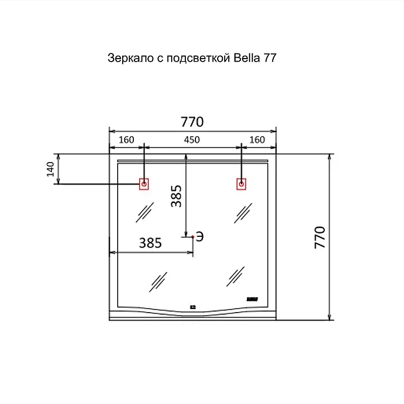 - Тип выключателя: сенсорный, расположен на зеркале.