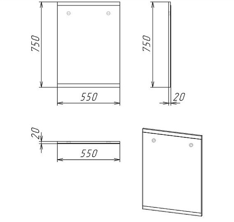 - Габариты (ШxВxГ): 550х750х20 мм.