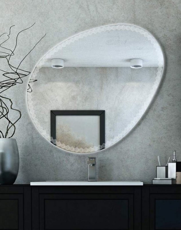 Элегантная округлая форма, отсутствие лишнего декора и мягкая подсветка создают образ парящей над поверхностью конструкции. Установка зеркала возможна над тумбой или раковиной.