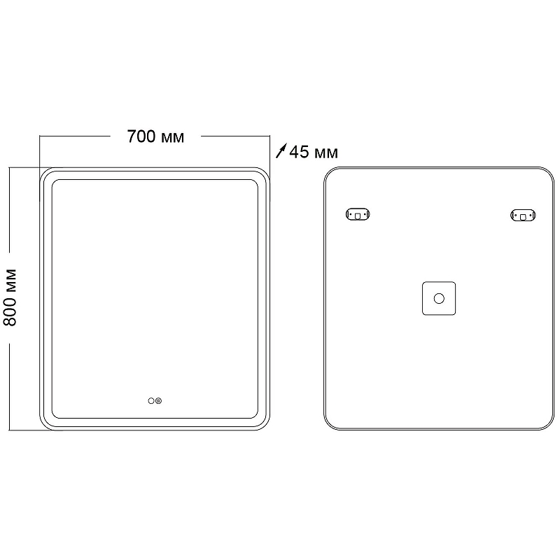 - Оснащение: LED подсветка, сенсорный выключатель, подогрев.