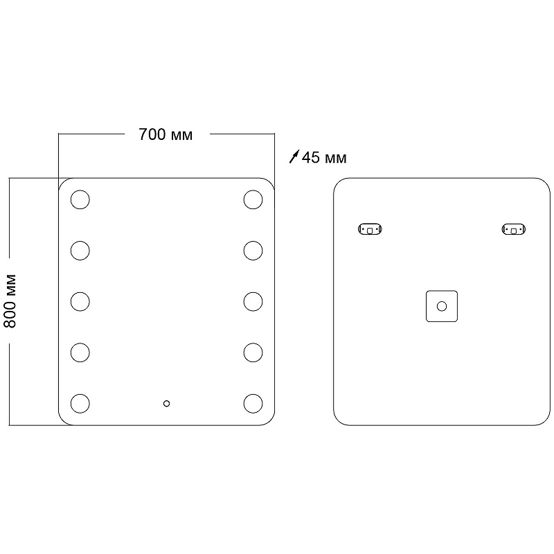 - Оснащение: LED подсветка, сенсорный выключатель.