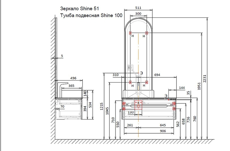 Зеркало Jorno Shine 51 Shi.02.51/A с подсветкой с бесконтактным выключателем