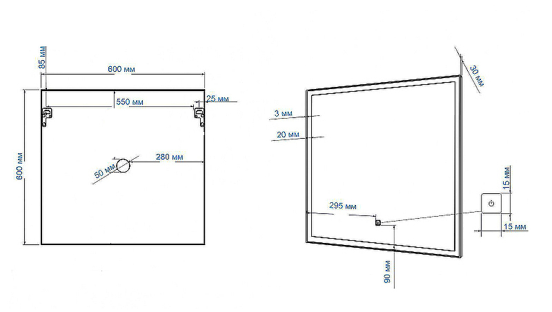 - Подсветка: светодиодная LED встроенная по периметру, с диммируемым сенсором.