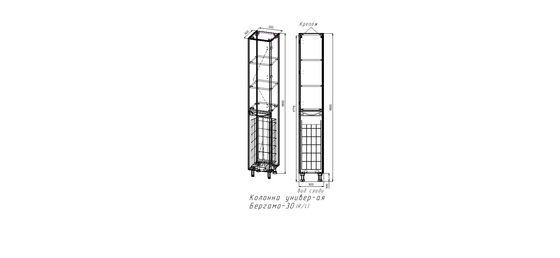 Колонна универсальная "Бергамо L" с корзиной, Люкс антискрейтч серый, PLUS