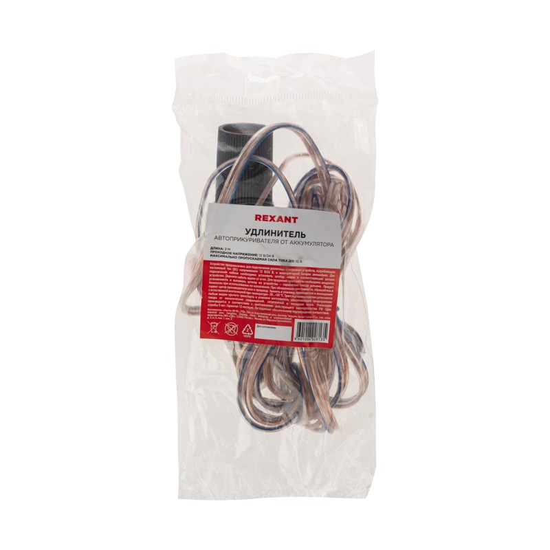 Удлинитель автоприкуривателя от аккумулятора 3 м. REXANT предназначен для подключения электронных устройств, таких как зарядные устройства, автохолодильник, телевизор, автокомпрессор, автопылесос и другие устройства, потребляющие постоянный ток (DC) напряжением 12В/24В, к аккумуляторной батарее автомобиля. Корпус гнезда автоприкуривателя разборный и изготовлен из ударопрочного пластика.