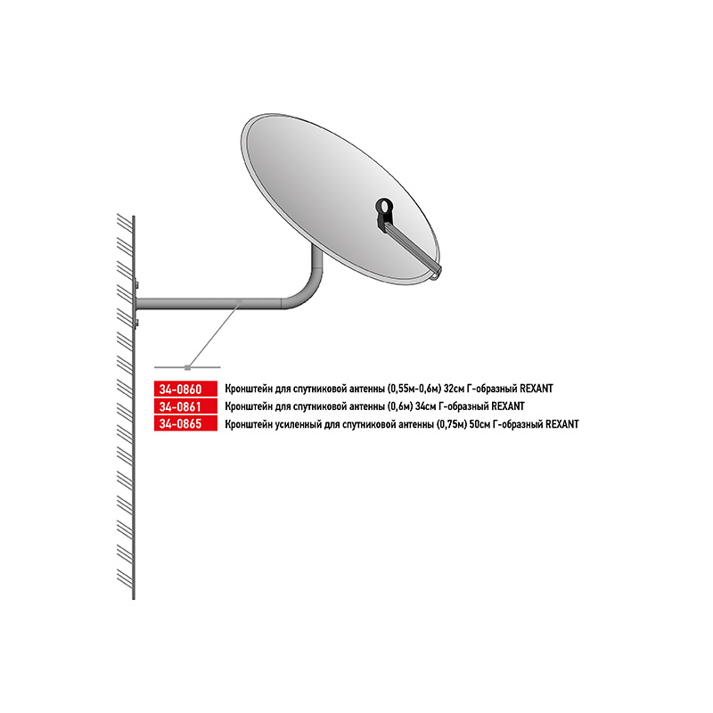 Кронштейн для спутниковой антенны Г-образный, усиленный (75см), 50см REXANT