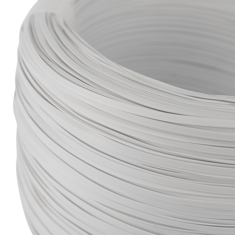 Представляет собой стальную проволоку, покрытую ПВХ-оболочкой белого цвета, что позволяет использовать данную проволоку в различных условиях. Материалы подобраны специальным образом, чтобы проволока имела высокую прочность, хорошую гибкость и возможность многократного изгибания без изломов.