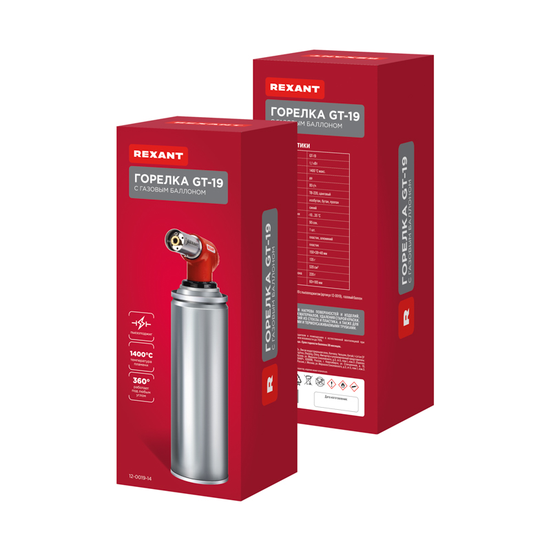 Набор горелка газовая GT-19 с пьезоподжигом + газовый баллон REXANT