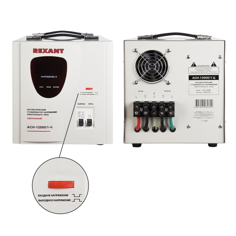 Однофазный стабилизатор переменного напряжения релейного типа марки REXANT предназначен для защиты различных бытовых и промышленных электроприборов от перепадов напряжения в сети и токов короткого замыкания.