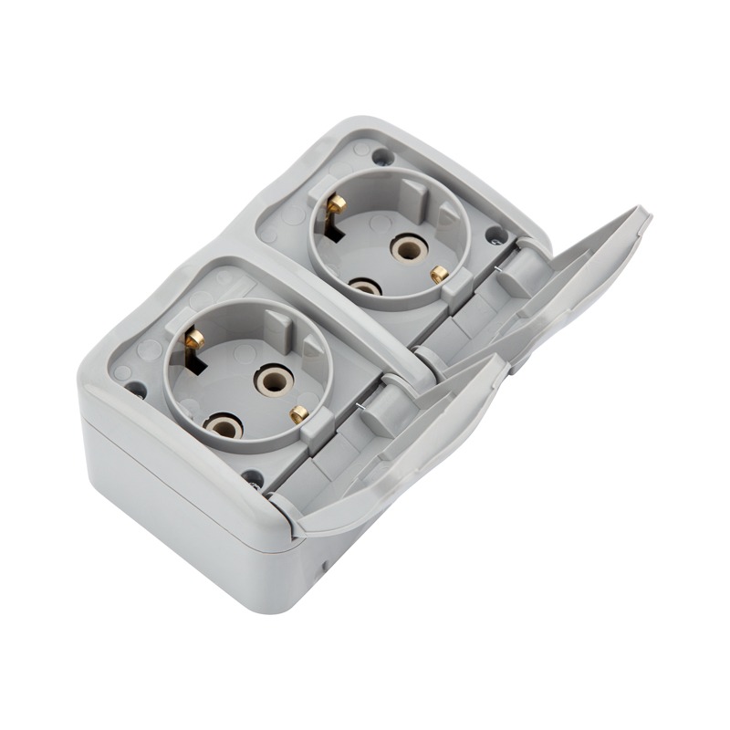 Блок горизонтальный 2 розетки (керамика) Mini OG IP54 с заземлением, о/у, серый KRANZ предназначен для организации электроснабжения не только в сухом помещении, но и во влажной и пыльной среде. <br> Благодаря лаконичной форме корпуса, он с легкостью впишется в любой интерьер.<br> Защитная крышка на лицевой поверхности защищает розетку от попадания брызг воды. Отлично подойдет для дачи, ванной комнаты, бассейна и улицы, при наличии навеса, защищающего от прямого попадания влаги.<br> Корпус механизма розетки выполнен из абсолютно негорючего материала – керамики.<br> Блок прост и легок в установке.<br> <br> Технические характеристики:<br> Напряжение: 220-250 В<br> Частота тока: 50 Гц<br> Номинальный ток: 10 А<br> Степень защиты: IP54<br> Сечение проводников: 1,5-2,5 мм²<br> Рабочая температура: -25...+40 °С
