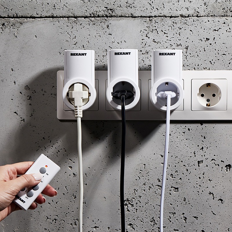 Радиоуправляемая розетка c пультом RX-003 (один пульт, три розетки) 10А/30м REXANT