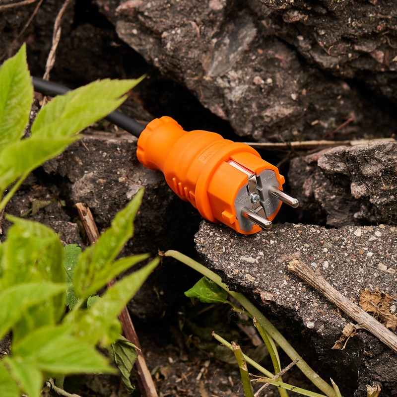 Вилка прямая влагозащищенная, c/з, 16 А, IP44, каучук оранжевая REXANT