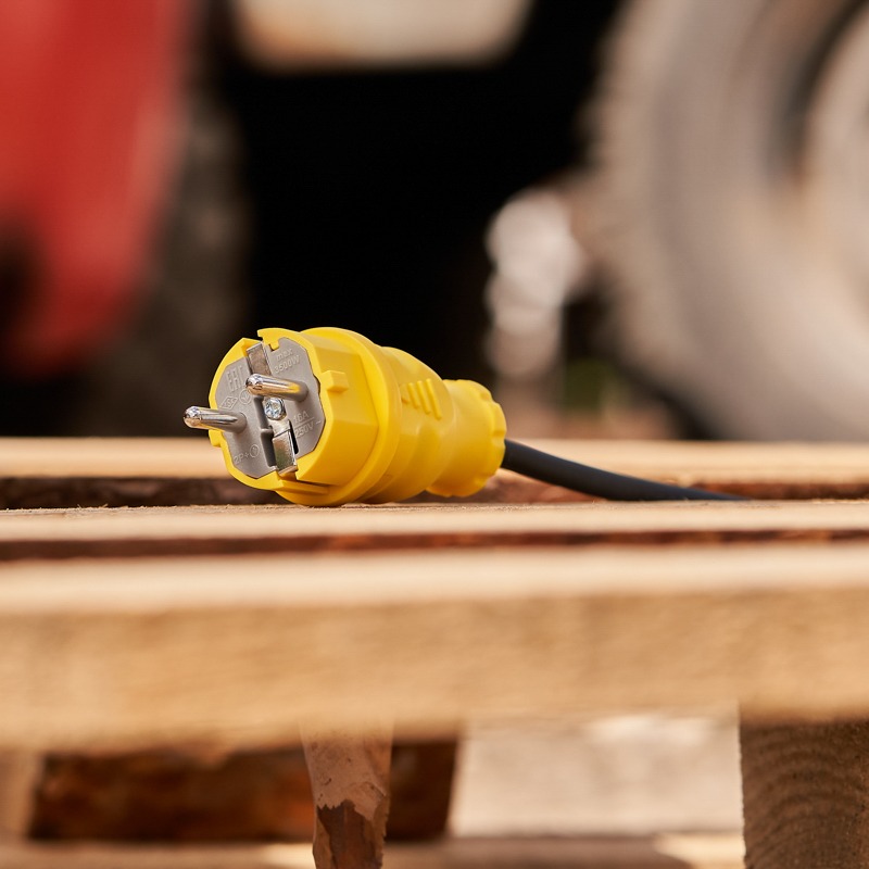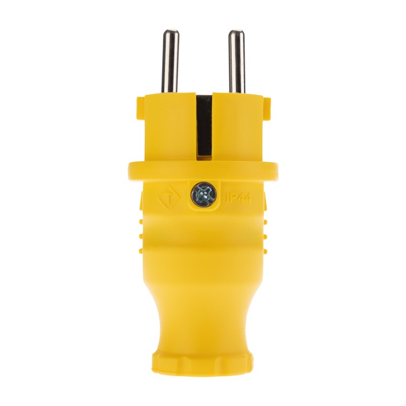 Вилка прямая влагозащищенная, c/з, 16А. IP44, каучук желтая REXANT