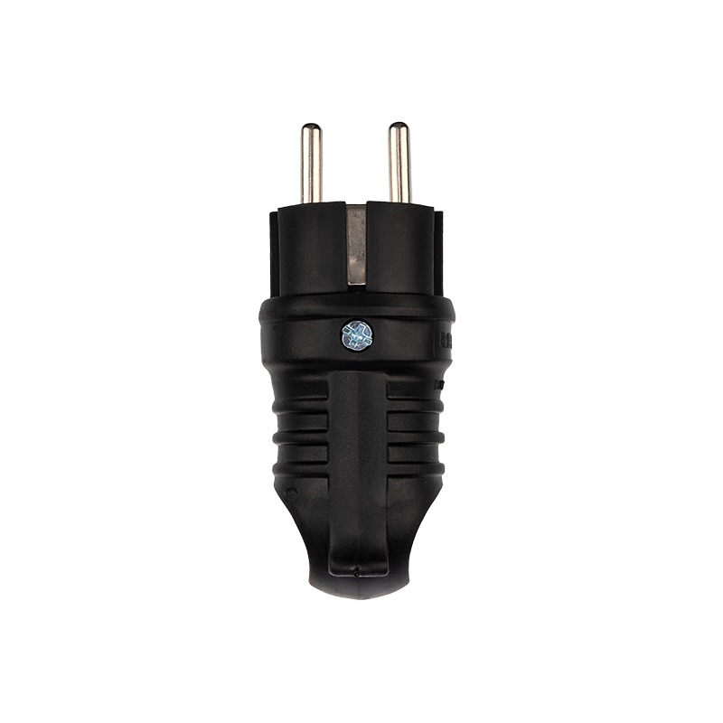 Прямая влагозащищенная электрическая вилка из каучука REXANT предназначена для использования в сложных эксплуатационных условиях с высокой влажностью и широко применяется в быту, производстве и строительстве. Она имеет степень защиты IP44 – защита от капель и брызг воды, попадающих под любым углом, и может быть применена для организации электропитания, в том числе под открытым небом. В дождь под навесом. Не допускается эксплуатация погружением в воду. Она легко монтируется, имеет высокую надежность и долгий срок службы. Для обеспечения безопасности все детали, соприкасающиеся с токоведущими частями, выполнены из огнеупорного материала, устойчивого к температуре до +850 ⁰С.<br> Ударопрочный разборный корпус выполнен из каучука – полимерный материал, сочетающий внешний вид, упругость и эластичность обычного каучука и эффективность обработки пластмасс.<br> <br> Преимущества каучуковых корпусов электрических разъемов:<br> Отличная износостойкость при изгибе<br> Хорошие диэлектрические свойства<br> Хорошая стойкость к разрыву и истиранию<br> Высокий диапазон рабочий температур<br> Высокая эластичность и стойкость к ударам, в том числе и при низких температурах<br> Низкий удельный вес<br> Отличная стойкость к химикатам и атмосферному воздействию<br> Высокая водонепроницаемость <br> <br> Характеристики:<br> Напряжение: 200-250 В<br> Номинальный ток: 16 А<br> Класс защиты: IP44<br> Заземление: есть<br> Корпус: каучук<br> Сечение проводников: 0,75-2,5 мм²<br> Контактная группа: латунь<br> Рабочая температура: -40...+80 °С<br> Тип полюсов: 2Р+РЕ
