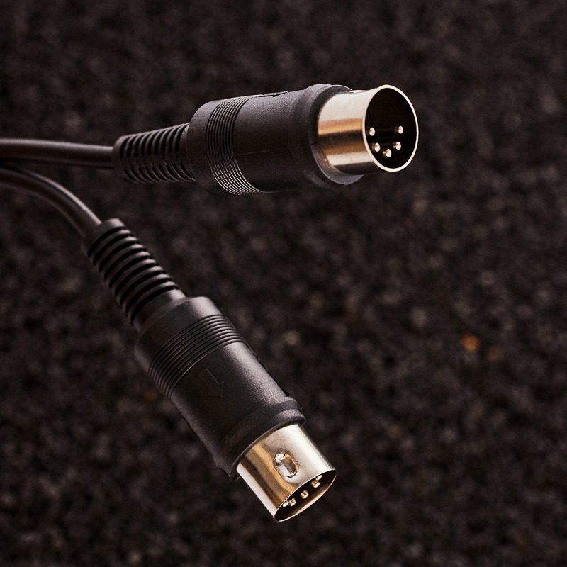 Цилиндрическая металлическая юбка разъема DIN 5 Pin, защищающая штыревые контакты от повреждения, снабжена ключом, чтобы вилку можно было вставить в розетку только в одном положении.
