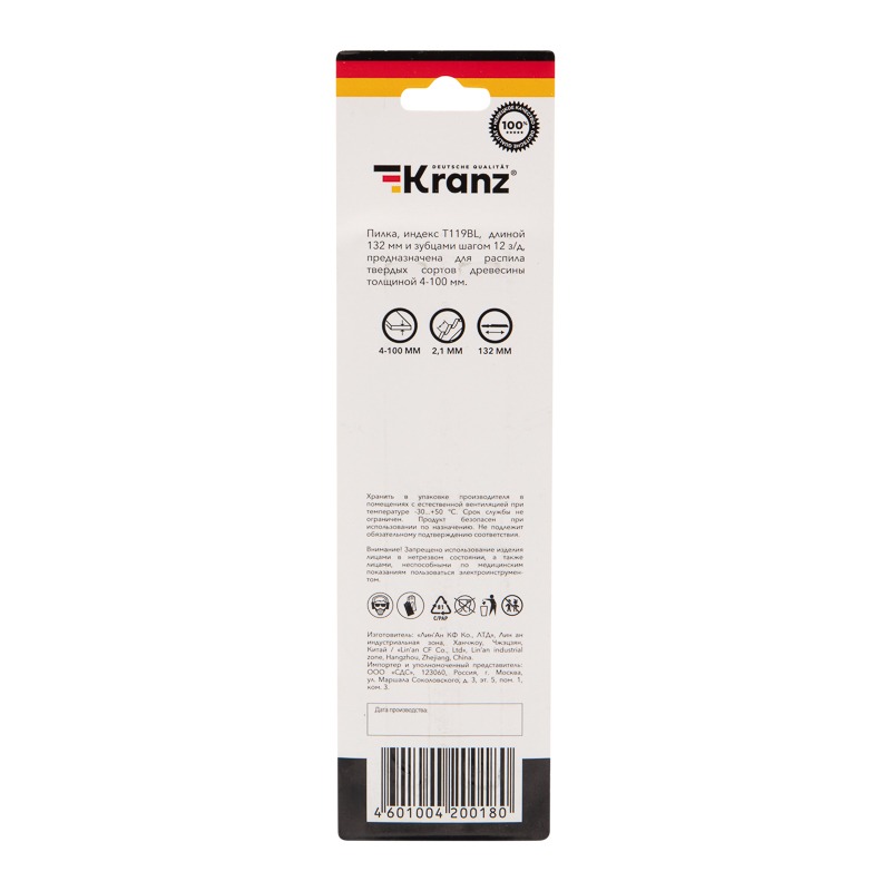 Пилка для электролобзика по дереву T119BL 132 мм 12 зубьев на дюйм 4-100 мм (2 шт. /уп. ) Kranz