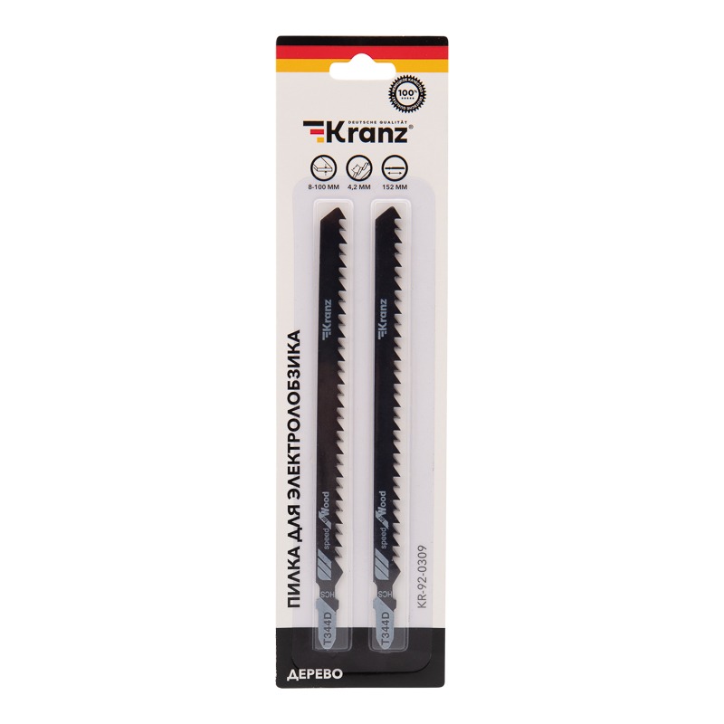 Пилка для электролобзика по дереву T344D 152 мм 6 зубьев на дюйм 8-100 мм (2 шт. /уп. ) Kranz