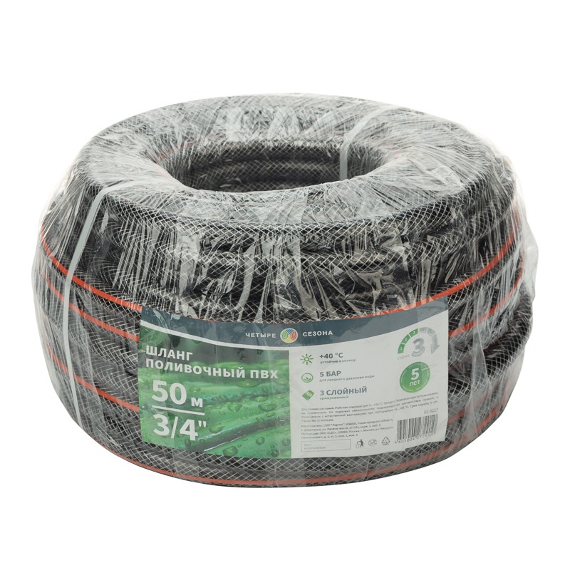 Шланг поливочный ПВХ 3-х слойный армированный 3/4" 50м Стандарт ЧЕТЫРЕ СЕЗОНА