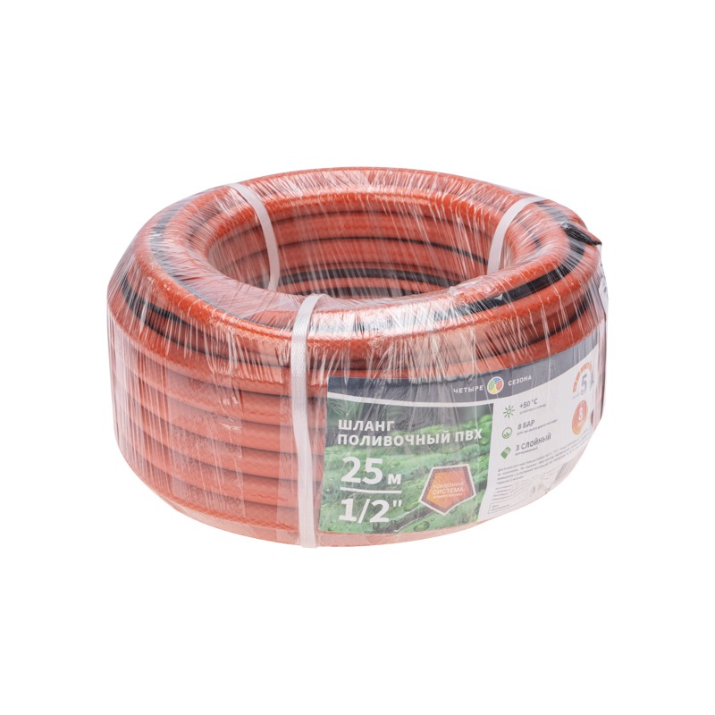 Шланг поливочный ПВХ 3-х слойный армированный 1/2" 25м Люкс ЧЕТЫРЕ СЕЗОНА