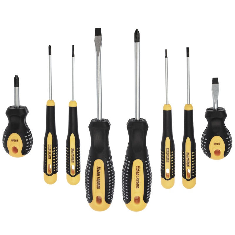 Набор крестовых и шлицевых отверток REXANT предназначен для выполнения монтажных и демонтажных работ с резьбовыми соединениями: шурупами, саморезами и т. д. Стержни инструментов выполнены из качественной хромованадиевой стали и оснащены намагниченными наконечниками.