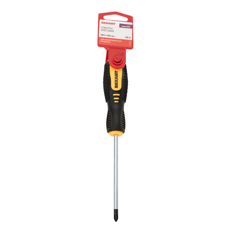 Отвертка крестовая PH1х100мм, двухкомпонентная рукоятка REXANT