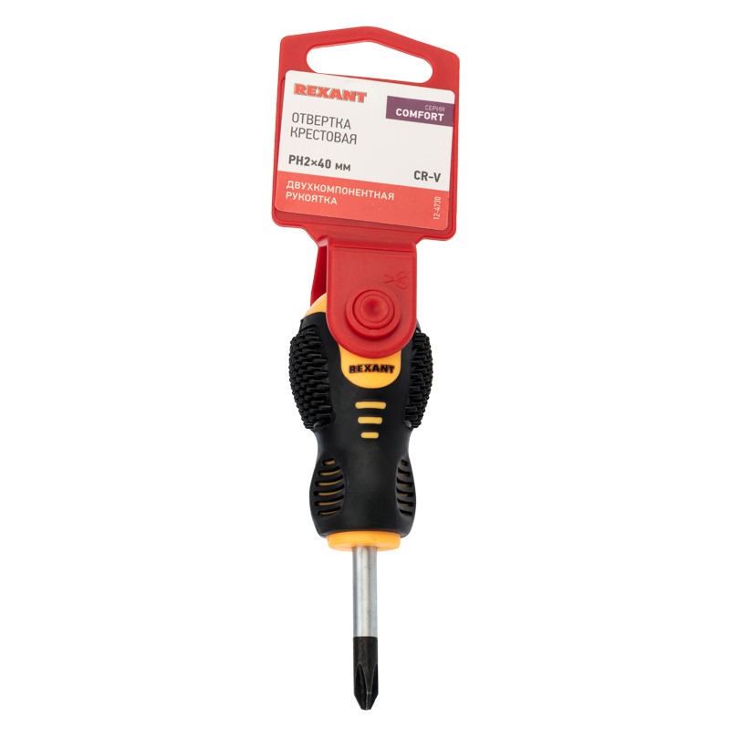 Отвертка крестовая PH2х40мм, двухкомпонентная рукоятка REXANT