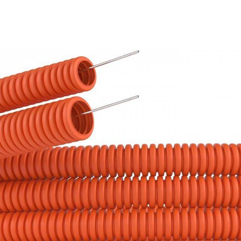 Труба гофрированная из ПНД, с зондом, оранжевая, Ø20 мм REXANT