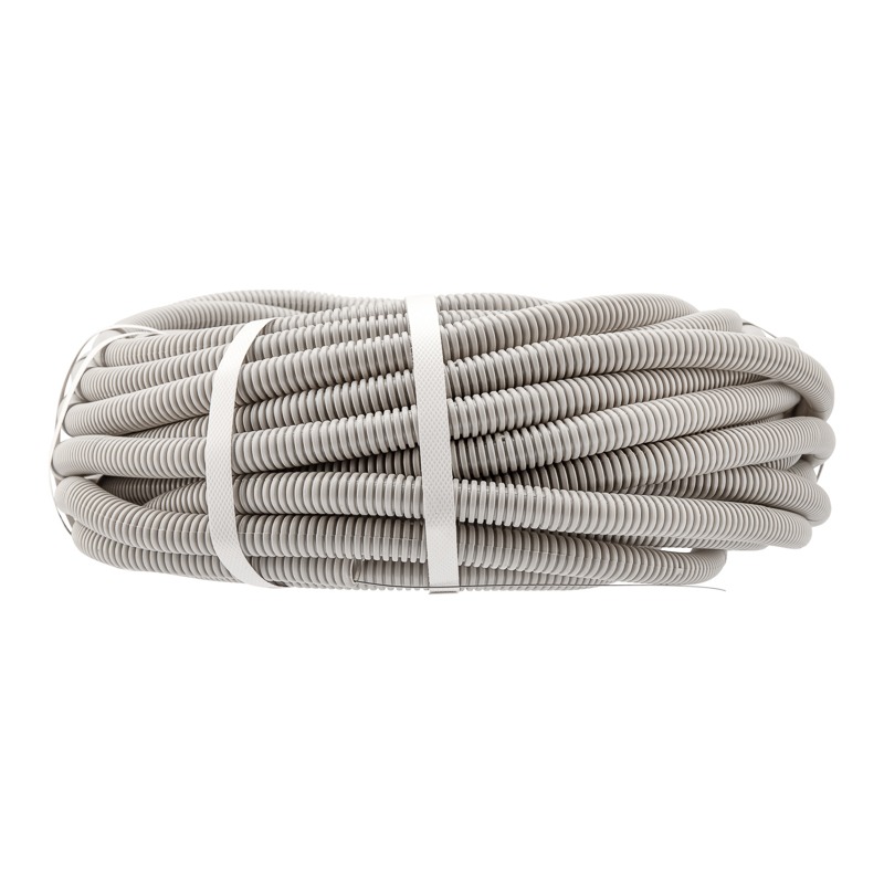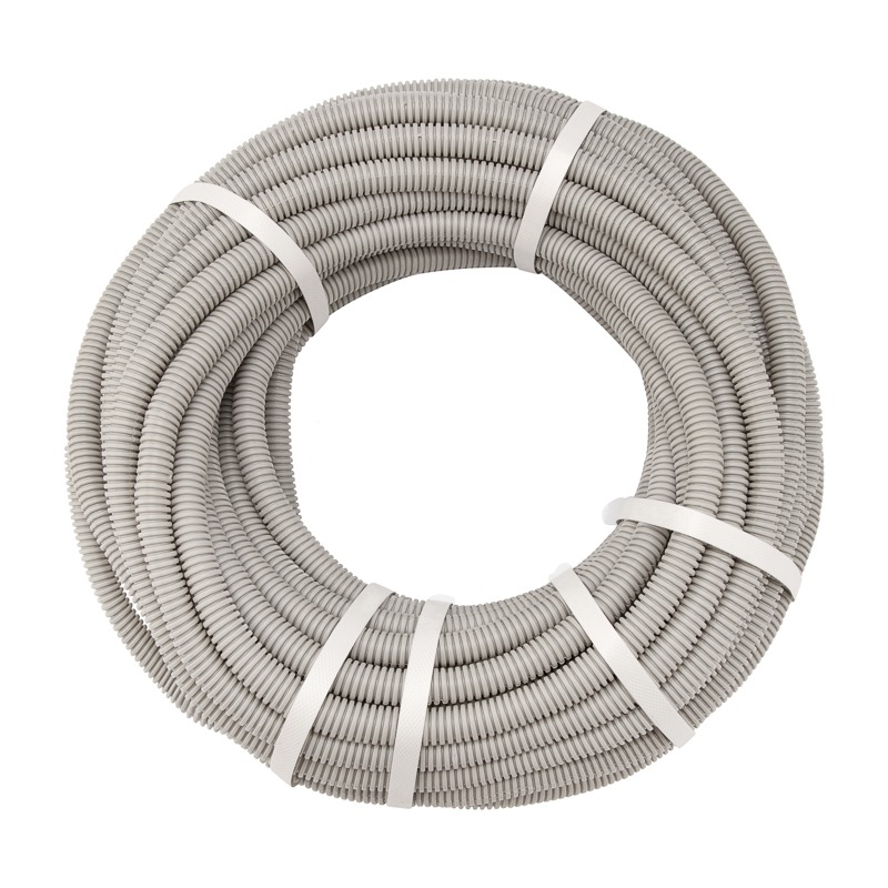 Гофрированная труба диаметром 25 мм предназначена для одиночной прокладки в ней телефонных, компьютерных, телевизионных и электрических сетей, работающих при электрическом напряжении постоянного или переменного тока величиной не более 1000 В. Сети прокладываются скрытым, полускрытым и открытым способами в стационарных электроустановках бытового и аналогичного назначения, эксплуатируемых внутри помещений. <br> Труба обладает рельефным строением: участки с малым диаметром позволяют трубе изгибаться в любом направлении, облегчая прокладку и монтаж коммуникации, а участки с большим диаметром придают жесткость, делая конструкцию прочной и надежной. <br> Наличие специальной металлической проволоки – зонда, позволяет быстро и легко прокладывать кабели и провода внутри трубы. <br> Материал изготовления – высококачественная композиция ПВХ. <br> Гофрированная труба длиной 50 м поставляется в бухте.
