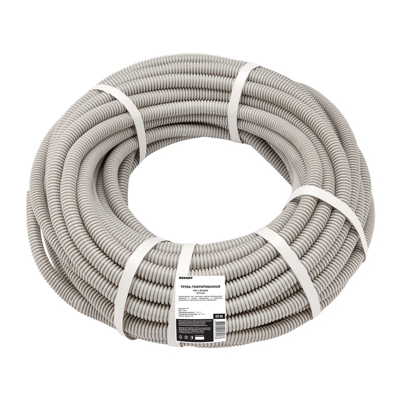 Труба гофрированная из ПВХ, с зондом, Ø25мм (бухта 25 м/уп) REXANT
